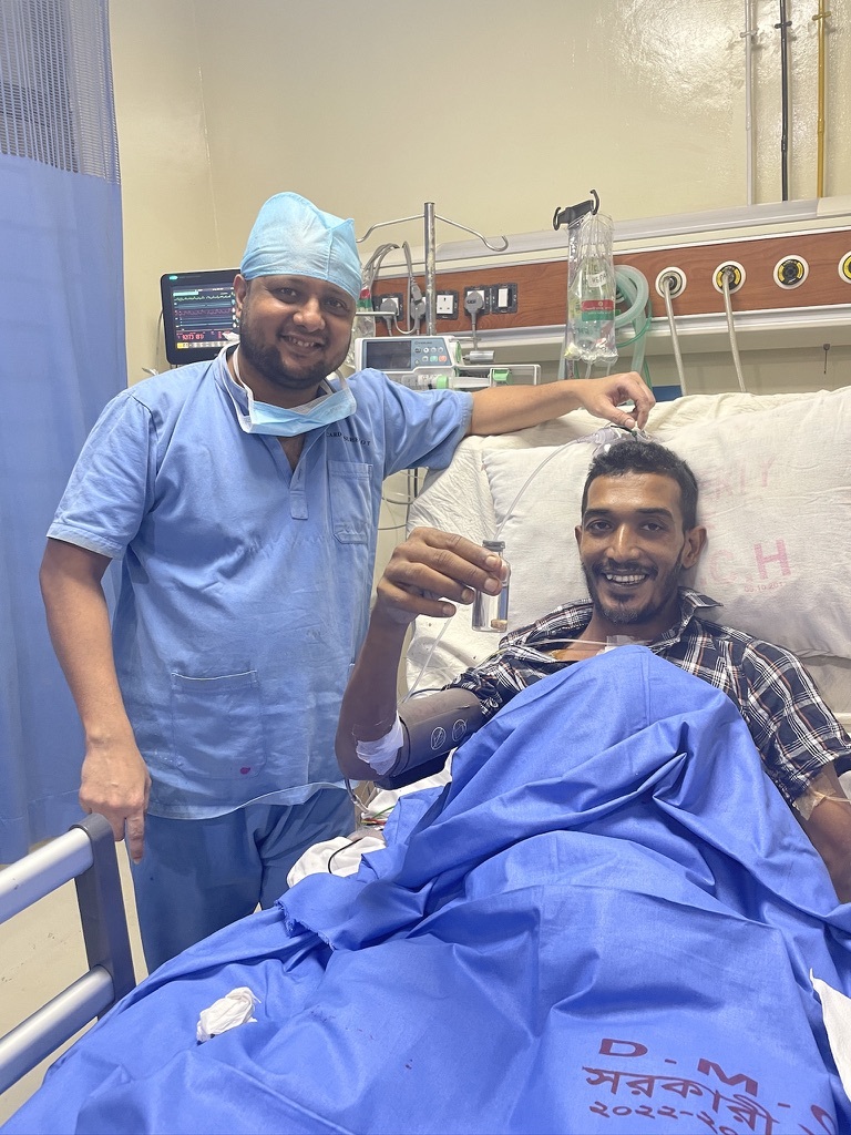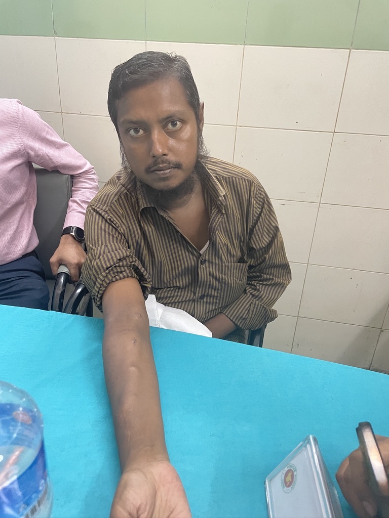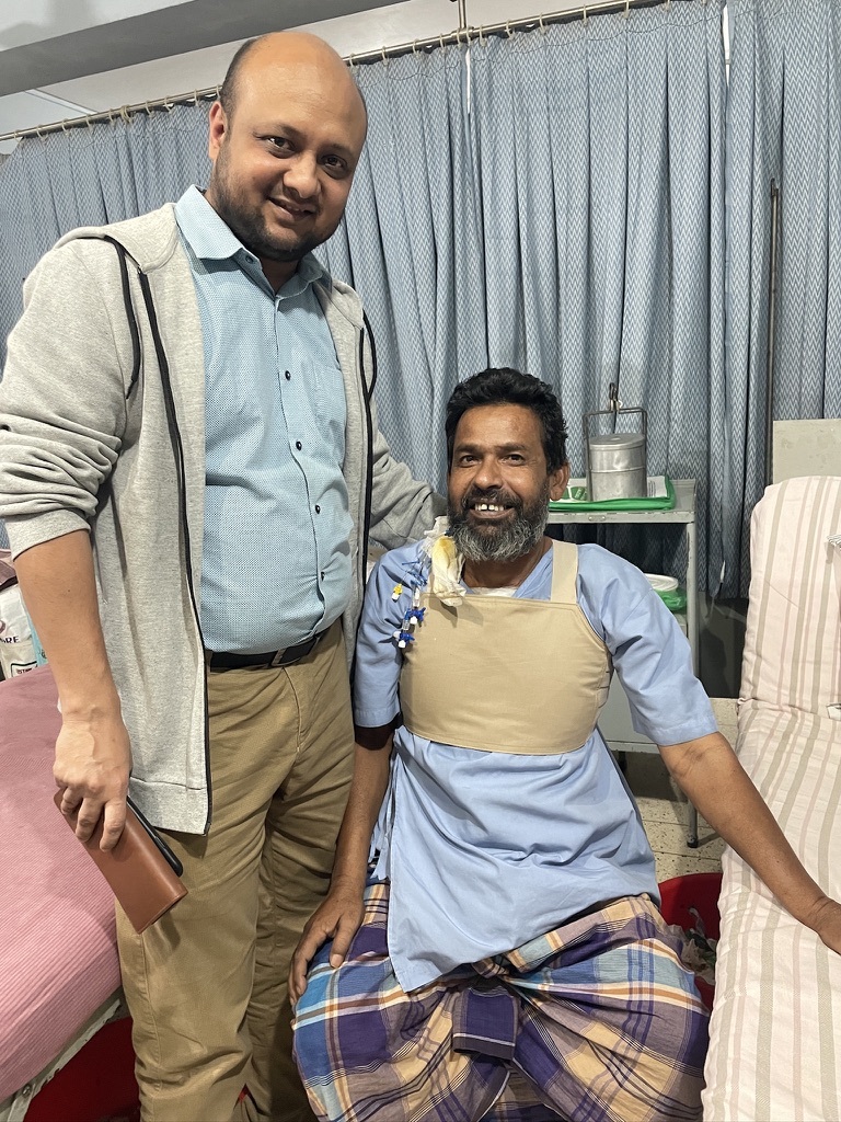 During the July 2024 days, I was actively participating in the student protest against the fascist regime. The ruling government did every possible things to eliminate us. Like many, I too got shot and was taken to nearby hospital in Rajshahi. I went through series of tests and surgeries, but all went in vain. I was lucky enough to visit Dr. Mosabber. He told the bullet inside my chest is actually adjacent to my heart in pericardial cavity. I needed to undergo surgery under Dr. Mosabber's supervision, who not only removed the bullet, the very next morning when I woke, he showed me the bullet I carried for few months in my heart. The picture tells me how happy I really am!